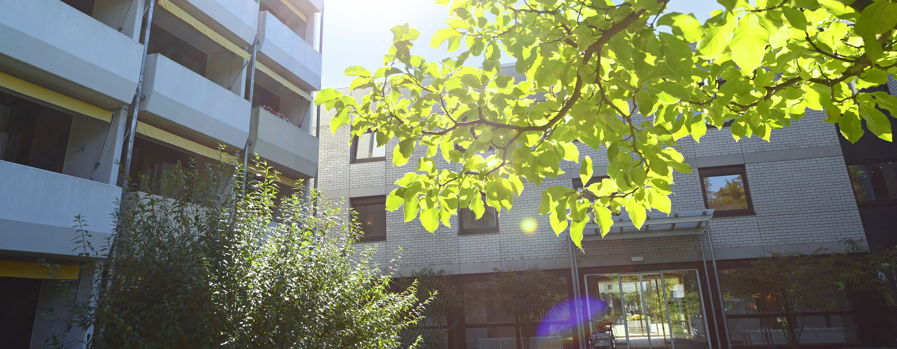 Our residence is characterised by a rural flair. The extensive building ensemble, located in a quiet residential area with adjacent park, is surrounded by forest. The city is nevertheless close and easily accessible, also by public transport with the underground, suburban train line and bus stops on the doorstep.