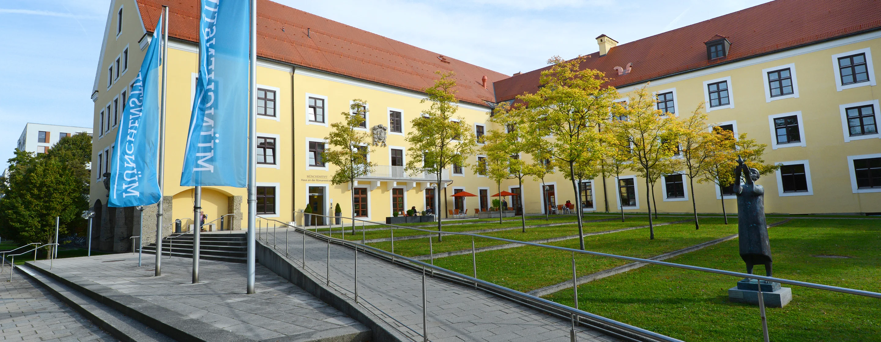 Located in a quiet residential area in the north of Schwabing, our spacious traditional residence provides a comfortable environment. Nature lovers will appreciate the extensive park with duck pond and guinea pig hutch at the back of the residence. The city centre can be reached in a few minutes by public transport - the bus stop is right in front of the building.