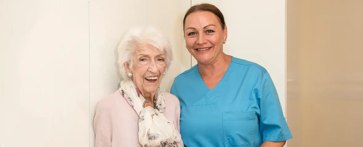 „Nach dem Krankenhausaufenthalt musste schnell Hilfe her“, sagt Irmgard Biegler. Die heute 99-Jährige kehrte nach einem Schlaganfall vor eineinhalb Jahren in ihr altes Zuhause zurück – dorthin, wo sie die meiste Zeit ihres Lebens verbracht hatte. In ihrem Stadtteil kennt sie viele Leute, hat Lieblingsläden und geht sonntags zum Mittagessen in ihre Stammwirtschaft. Der Sozialdienst des Krankenhauses vermittelte den Pflegedienst der MÜNCHENSTIFT. Anfangs kam er nur wegen der Medikamente. Doch bald passte man die Unterstützung ihrer Situation an: Hilfe bei der Körperpflege, beim Frühstück, zeitweise beim Mittagessen und beim Einkauf. Auch ihre Nichte, die sich trotz Entfernung und ihrer 83 Jahre um die Bürokratie kümmert, wurde entlastet.