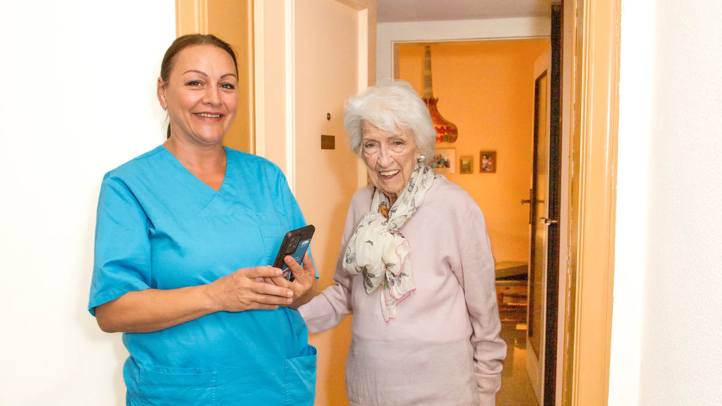 „Kein Tag ist wie der andere – ein guter Dienstplan ist entscheidend, um nicht in Stress zu geraten und für die Menschen da zu sein“, sagt Alesia Salauyova. Dabei hilft die Digitalisierung, die die MÜNCHENSTIFT in den vergangenen Jahren systematisch ausgebaut hat. Alle Mitarbeitenden im Pflegedienst nutzen Smartphones, über die sie auf dem laufenden Stand der Einsatzplanung bleiben. „Ich sehe bei allen Kunden alles Wichtige auf einen Blick: Angehörige, Arztkontakte, aktuelle Pflegeberichte. Vieles läuft per Spracheingabe und am Ende hake ich alles ab, sodass ich nichts vergesse – keine Zettelwirtschaft mehr“, so Alesia Salauyova. „Die Einführung der digitalen Dokumentation war ein großer Fortschritt. Alle Informationen, die unsere Kund:innen betreffen, sind jederzeit unterwegs einsehbar“, erklärt Danijela Ljevar, Einsatzleitung des Pflegedienstes Bogenhausen und stellvertretende Pflegedienstleitung im Haus an der Effnerstraße. Bei Notfällen oder Änderungen können Kolleg:innen sofort einspringen. Sie und ihr Pflegeteam prüfen alle Einträge, erstellen Maßnahmenpläne und behalten den Überblick über geleistete Einsätze. Ihr Fazit nach 23 Jahren Erfahrung bei der MÜNCHENSTIFT: „Mehr Information, weniger Fehler – und mehr Zeit für die Menschen.“